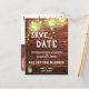 Bois de mariage campagnard rustique mason chaîne de lampadaire branche avec feuilles verts Enregistrer la carte postale Date. Le cordon lumineux illumine les feuilles verts contre un beau bois rustique brun foncé. Ce design mariage rustique est personnalisable et parfait pour votre beau mariage campagnard extérieur ou mariage occidental. Vous pouvez personnaliser en modifiant le texte et en ajoutant des images si vous le souhaitez. Vous pouvez également choisir un type et une épaisseur de papier différents. Pour les articles correspondants, veuillez consulter la collection ci-dessous avec d'autres articles dans la suite mariage rustique.