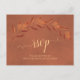 Ces belles cartes postales RSVP faciliteront la réponse de vos invités à votre faire-part de mariage. Elles présentent un design rustique avec des sprigs aquarelles peints à la main de feuilles couleur rouille orangée ou de couleur brulée sur un arrière - plan en terre cuite marbré. Le verso est un formulaire à remplir et à retourner pour indiquer s'ils peuvent assister ou non ainsi que leur choix de repas. Il y a de la place pour votre site mariage afin que vos invités puissent répondre en ligne s'ils le souhaitent.