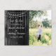 Envoyez les cartes postales Save the Date pour informer vos invités de bloquer la date pour votre mariage dans le futur proche. Il y a un arrière - plan en bois rustique avec une série de lumières accrochées au-dessus. Vous pouvez facilement personnaliser avec vos informations.