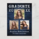 Carte postale rustique sur le thème du pays 3 faire-part de remise de diplômes photo. Ce design est composé de typographie de style rustique en typographie surmontée de "Graduate", l'année de la graduation et bien sûr le nom du grade. Les photos mettent en valeur la carte et sont accentuées par un arrière - plan beep en planche bleu marine. Le dos de la carte offre des espaces de texte personnalisés pour des informations sur votre diplôme ou peut être effacé si vous souhaitez écrire un message à la main. Parfait pour les étudiants de niveau secondaire, collégial et universitaire et les personnes âgées.