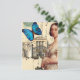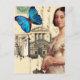 Un beau portrait vintage de la jeune reine Victoria, couplé à un papillon bleu vif, placé sur un arrière - plan comprenant une photo du Palais de Buckingham et une carte postale vintage. © Julie McIver/Wickarly Lovely