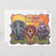 La carte postale de Cute Safari Animal présente notre numériquement d'art original peint par Traci Van Wagoner de trois personnages animaux africains mignons de notre ligne Animal Parade debout dans un champ herbacé avec une clôture blanche et un ciel jaune texturé. À leur sujet sont les mots Merci! De nous tous. Ces animaux amusants apporteront un sourire au visage de n'importe qui quand ils reçoivent ce Merci dans le courrier. Faites-nous parvenir un joyeux et adorable merci aujourd'hui !