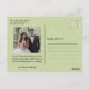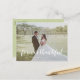 Ce Mariage 2 carte photo dispose d'une photo à fond saigné avec écriture manuscrite sur le devant de la carte postale. Ajoutez une deuxième photo plus petite au dos avec une courte note customisée. Le dos de la carte avait une douce couleur vert ressort avec un motif de feuilles verdoyants. Pour toute question sur les changements de conception personnalisés par le concepteur indépendant, veuillez envoyer un courriel à paula@labellarue.com AVANT de customiser ou de passer une commande.