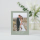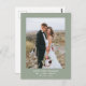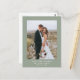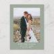 Ces cartes postales de remerciement de mariage minimalistes et élégantes comportent du texte blanc moderne sur un arrière - plan vert sage, avec votre photo personnelle. Un look simple et élégant.