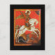 Cette carte postale présente une reproduction photographique d'un tableau ancien sur le bois ou de St. George tuant le dragon. Les couleurs de cette peinture centenaire sont bien conservées dans les rouges vifs et les dorures.