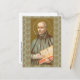 Le noble et soldat basque espagnol devenu prêtre et théologien, saint Ignace Loyola (1491-1556) fut fondateur et premier supérieur général de la Société de Jésus (les Jésuites). Ici, St Ignace est habillé de style jésuite. Il porte une simple chaussette noire, probablement emballée et filmée à la taille non boutonnée sur le devant, et une cape noire collée. Il tient un livre ouvert, probablement la sainte Règle de la Société, inscrit avec la devise des Jésuites "[Omnia] ad majorem Dei gloriam", c’est-à-dire "[Toutes choses] pour la plus grande gloire de Dieu". Liés par un voeu d'obéissance spéciale au Pape, les Jésuites entreprirent un travail missionnaire et une éducation en orthodoxie sous directives papales au 16ème siècle, jouant un rôle particulièrement important dans la Contre-Réforme. + Un motif de boucliers contenant le Christogram, le monogramme JHS au-dessus de trois clous, borde l'image principale. IHS (ou iota-eta-sigma) signifie les trois premières lettres du nom de Jésus en grec ; les trois clous, pour la Passion du Christ crucifié. + Fête de Saint Ignace : 31 juillet + Crédit image (JM 27) : Image antique de Saint Ignace Loyola, publiée à l'origine dans la chromolithographie par Josef Müller Art Publisher, Munich et New York, premier quart du 20e siècle. Il ne s'agit que d'une des plus de soixante images dans un style très populaire de tirages dévotionnels émis en plusieurs tailles et formats par Müller au tournant du dernier siècle. + Crédit d'image (Bouclier) : Détail d'une empreinte dévotionnelle antique en chromolithographie de SS. Ignace de Loyola, Benoît de Nursia, et François d'Assise, publié à l'origine par B. Kühlen, Mönchengladbach, Allemagne, fin 19ème-début du 20ème siècle. Les deux gravures de dévotion sont tirées de la collection privée de l’éphémère religieux du concepteur.