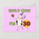 Texte : "Vache sainte J'ai 30 ans" sur les T-shirts, tasses, cartes, boutons, magnets, timbres-poste et autres vêtements et cadeaux de 30 ans avec une jolie vache caricaturale dans un casquette de fête tenant un cadeau d'anniversaire et un cupcake d'anniversaire !