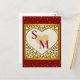 Carte Postale Saint-Valentin avec initiale rouge et cœur doré