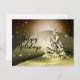 Carte Postale Salutation de Noël Arbre d'Or Étoiles brillantes é