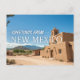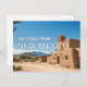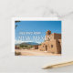 Une carte postale moderne avec un bâtiment classique du Nouveau Mexique en adobe sur fond de belles montagnes et d'un ciel bleu clair. Les tons chauds et terreux de l'architecture et du paysage capturent parfaitement l'esthétique unique du sud-ouest. Le texte "Salutations from NEW MEXICO", propre et contemporain, en fait un souvenir élégant et authentique pour tous ceux qui aiment la culture et le paysage du Pays d'Enchantement.