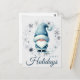 Un joli tableau aquarelle d'un gnome de Noël, habillé d'un casquette rouge douillet, au milieu de branches délicates ornées de baies.