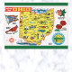 Cette carte postale présente une illustration vintage d'une carte de l'Ohio et un cardinal. Il est écrit "Salutations de l'Ohio". Crédit photo : Hope More, 2023.