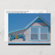 Sam et Omie's Restaurant Nags Head NC Carte postale. Depuis 1937, ce restaurant de plage réputé est très apprécié des habitants, des pêcheurs et des touristes. En regardant vers le haut le deuxième étage de l'immeuble en bardeaux, cette photo isole et montre le signe de leur célèbre Sam & Omie bleu. Le panneau est situé à côté de 2 fenêtres, juste en dessous de la ligne de toit, qui sont toutes deux peintes d'un bleu assorti. Blue sky arrière - plan complète cette simple photo colorée. Arrêtez-vous !
