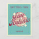 San Antonio Texas, Retro Vintage Design avec une boule disco en rose et des teintes de pêche à l'abricot. Cette belle carte postale est une carte de voeux parfaite pour les résidents, les visiteurs, les touristes ou les fans de San Antonio.