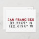 Les coordonnées de longitude et de latitude de San Francisco dans les polices en détresse donnent à cette carte postale un aspect urbain moderne