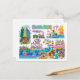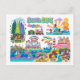 Carte Postale Santa Cruz Illustrated Map Boardwalk Beach Surfing