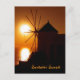 Carte Postale Santorin Coucher de soleil avec texte - Moulin à v