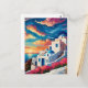 Carte Postale Santorin coucher de soleil, Grèce - Fleurs roses c