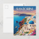 Carte Postale Santorin Grèce Dôme Bleu Voyage Art Rétro
