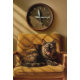 Sardine O’clock Dreamtime - Surreal Cat Art. Une image rêveuse et surréaliste où le temps lui-même tourne autour de l’estomac d’un chat. Ici, un félin assoupi bouge sur une chaise vintage sous une horloge dont les mains sont des sardines, annonçant avec humour qu’il est toujours le dîner dans le monde des rêves. Lumière dorée et tons du milieu du siècle donnent une impression de nostalgie et de douceur à cette composition tendre et fantaisiste célébrant les rêves des félins.