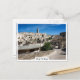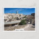 Carte postale de l'architecture ancienne et des maisons troglodytes de la ville de Sassi di Matera dans la région de la Basilicata en Italie avec un bord blanc et le texte 'Matera'.