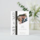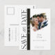 Partagez votre joyeuse nouvelle avec cette belle carte postale "Save the Date", conçue pour mettre en valeur votre histoire d'amour. L'élégante police de caractères cursive utilisée pour les noms et la phrase "Save the Date" respire la romance et la sophistication. Un espace dédié est prévu pour une photo chérie, ce qui rend chaque carte unique et personnelle. Cette carte postale est un moyen parfait d'informer vos invités de la date et du lieu de votre mariage dans un style qui reflète votre occasion spéciale. Le design épuré et l'attrait classique garantissent qu'elle restera un souvenir précieux.