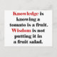 La connaissance, c'est savoir que la tomate est un fruit. La sagesse ne la met pas dans une salade de fruits.
