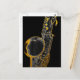 Saxophone magnifique en noir et blanc avec des reflets dorés, sur un fond noir.