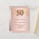 Une invitation moderne, élégante et glamour pour un 50ème anniversaire. Un arrière - plan métallique à l'apparence rose à l'or faux avec des étoiles à gouttes d'or faux. Le nom est écrit avec un rose moderne de couleur or foncé à la main écriture style. Personnalisez et ajoutez les détails de votre fête. Le numéro 50 est écrit avec une police de style ballon, script. Retour : arrière - plan or rose, design carte postale. Conseil : Si vous ne voulez pas qu'il ressemble à une carte postale, cliquez sur customiser, allez à l'arrière et retirez le séparateur et le timbre postal.