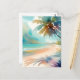 Envoyez une tranche de paradis avec notre carte postale Tropical Beach Scene. Cette superbe carte postale présente un tableau serein d'une plage aux palmiers balançants, des vagues douces qui tapissent doucement le rivage, et un horizon qui invitation des rêves éternels. L'effet aquarelle ajoute une touche de charme artistique, captant l'essence d'une escapade tropicale paisible.