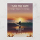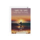 Un cadre romantique dressé contre une scène de coucher de soleil au bord de la plage, où peut-être en lune de miel se tient la silhouette contre les teintes dorées-oranges du soleil couchant. Ils s'embrassent près du rivage alors que des vagues s'écrasent sur le sable. Les tons chauds et l'ambiance paisible évoquent l'amour et la sérénité. Options de personnalisation : Personnalisez avec vos noms, date mariage et détails du lieu pour créer une conservation unique pour votre journée spéciale.