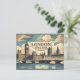 Cette carte postale rétro capte l'essence de Londres, en Angleterre, avec des icônes classiques comme les bus rouges, Big Ben et les rues historiques. Dans des tons vintages, il est un hommage nostalgique au charme et à la grandeur intemporels de la capitale britannique.