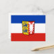 Carte postale avec drapeau de variante du Schleswig-Holstein; conception avec tricolore horizontal de rouge, blanc et bleu, et avec armoiries de l’État au centre