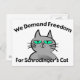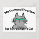 This design shows a cross kitty with the text "We Demand Freedom For Schrodinger's Cat". A funny design for any geek or nerd that plays on a famous thought experiment regarding the dual existence of a cat when the outcome is unknown. *No cats were harmed in either the original thought experiment or in the creation of this design.