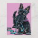 Sujet illustration d'un Scottie noir tenant anxieusement sa laisse. Encre et crayons colorés. c) Andie 2014.