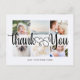 Script avec cœur Merci 6 photos Universal Carte postale. Cartes postales personnalisées avec 6 photos de famille collage Universal Greetings avec un collage de photos élégant avec 6 images personnalisées, votre message de félicitations dans une police de caractères cursive élégante, votre nom, date, année, message au verso dans une police sans empattement moderne et simple.