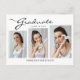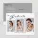 Cette élégante carte postale moderne 3 photo graduation, présente des éléments design du texte moderne fusionnés avec un élégant script de calligraphie. Les photos des diplômés sont placées avec art sur le devant de la carte tandis que le dos de la carte offre des espaces de texte personnalisés pour des informations sur la graduation et le futur voyage. Les Arrière - plans sont blancs sur le devant et gris argenté sur le dos ou customisent facilement ces couleurs à des couleurs de votre choix. Pour voir d'autres articles comme celui-ci, visitez mon magasin ici à "www.Zazzle.com/LakeViewCardCo". Merci