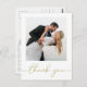 Ce design comprend un script de calligraphie or simple moderne, un minimaliste minimaliste minimaliste de deux photos, un couple photo mariage, un modèle contemporain épuré, une police de texte de script de typographie élégante, un mariage photo cartes de remerciement, un design personnalisé customisé, une police de lettrage doré manuscrit, un script original simpliste et élégant, une calligraphie mariage budget amical merci cartes