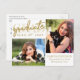 Moderne 2 photo collage style graduation horizontale modèle superposition avec accents dans une élégante palette d'or blanc et faux champagne métallique. Le design avant est composé d’un chic script de brosse à lettres "gradué" et de 2 photos, ainsi que du nom, de l’école et de l’année de graduation de la diplômée. #thankyou #bound #classof2019