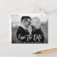 Brosse moderne Script tendance Enregistrer la date Fiançailles Couple Photo Carte Postale - Noir & Blanc