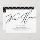 Faire-part d'adresse nouvelle maison en noir et blanc avec une police de script moderne avec un plaid de coordination pour une touche supplémentaire.