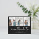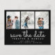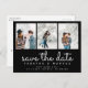 diffusez les nouvelles joyeuses de votre prochain mariage avec cette classe et élégant enregistrer la date. avec le texte du script tendance et le texte gras complémentaire qui peut être modifié pour montrer vos détails. espace pour 3 photos choisies rendent cet extra spécial.