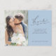 Carte Postale Script moderne Photo Mariage bleu Merci