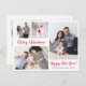 Budget Minimaliste Élégante Calligraphie Blanc et Rouge Multiples Photos de Noël Cartes. Ce modèle festif, simple 5 (cinq) photo de carte de vacances présente un joli collage photo (sur l'avant 4 photo et au dos 1 photo), un "Joyeux Noël" et "Joyeux Fêtes" dont les textes de bienvenue sont écrits dans une belle main lettré en caractères gras de script de brosse. Au verso, un modèle de message personnalisé préfabriqué. Jolie carte postale de voeux pour votre famille et vos amis en période de Noël. Cartes postales de vacances pas cher.
