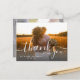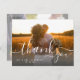 Texte écrit à la main whimsical rustique mariage photo carte de remerciements. Design par le designer mariage Elke Clarke© Placez deux photos sur vos cartes de remerciement mariage, une sur le devant et une deuxième photo sur le dos. Envoyez votre message de remerciement mariage à vos amis et à votre famille en utilisant cette carte postale de remerciement simple et magnifique avec les mots "merci" écrit dans un script d'écriture blanc superposé. Cartes postales en Merci mariage avec votre photo. Conception par Elke Clarke©. Remplacez l'exemple de photo par le vôtre. Ajoutez votre message de remerciement personnel sur le dos ou laissez vide et écrivez votre message en personne. Autres couleurs disponibles.