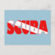 Dans la langue de la plongée, nous devons inclure l'anglais. Ici le mot scuba est montré avec la couleur rouge et blanc d'un drapeau de plongeur en bas comme l'arrière - plan. Vous pouvez customiser ce cadeau ! Déplacez le design, changez la couleur ou le style arrière - plan, ajoutez du texte ou des images — faites-le vous-même !