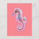 Un hippocampe stylisé aux teintes rose et violet vibrantes se distingue par son arrière - plan sombre. Il présente un design complexe avec des écailles à motifs et une queue recouverte qui suggère une interprétation fantaisiste et artistique.