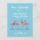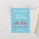 Cartes postales de Noël Flamant rose avec accueil personnalisé pour la saison des Fêtes. Couleurs vert mer et rose avec un thème tropical de flamants roses et d'étoiles de mer. La signature passe à l'envers sur une scène de plage.