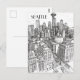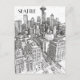 Cette carte postale de voyage, en style croquis dessiné à la main, offre une vue sur l'horizon de Seattle.