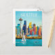 Carte Postale Seattle Waterfront & Space Needle Retro Art